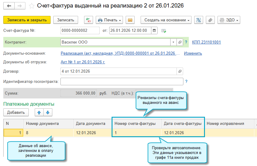 С 01.01.2026 эти графы заполняются у продавца, когда при реализации товаров, работ и услуг зачитывается аванс, ранее полученный от покупателя (Письмо ФНС от 26.12.2025 № СД-4-3/11730@).