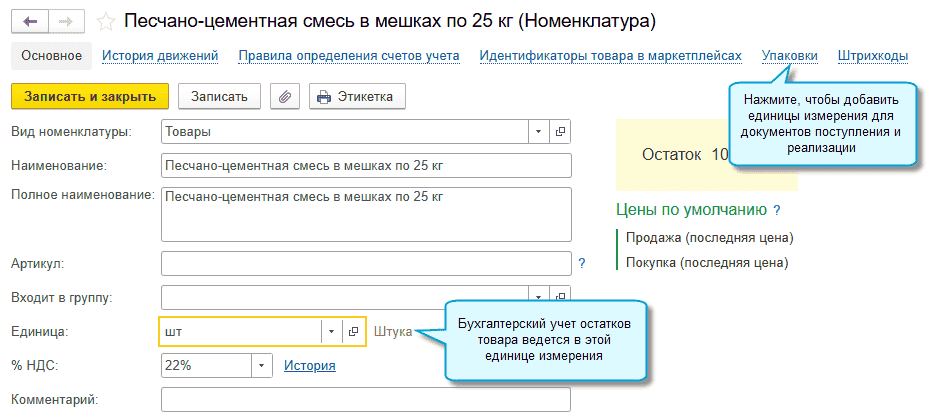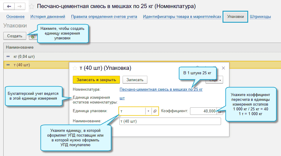 Чтобы воспользоваться, потребуется выполнить настройку и указать в карточке товара варианты упаковки (единицы измерения), используемые поставщиками и покупателями.