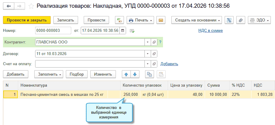 В программе «1С:Бухгалтерия 8» начиная с релиза 3.0.196 добавлена возможность использовать одну карточку товара, когда поставщик по ЭДО присылает УПД в единице измерения товара, отличной от используемой в организации, или покупателю нужно оформить УПД в единице измерения, установленной госконтрактом. Например, учет товара ведется в штуках, поставщик оформляет УПД в тоннах, а покупателю нужен УПД в килограммах.