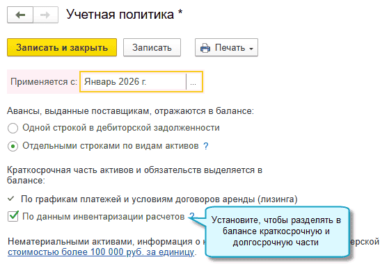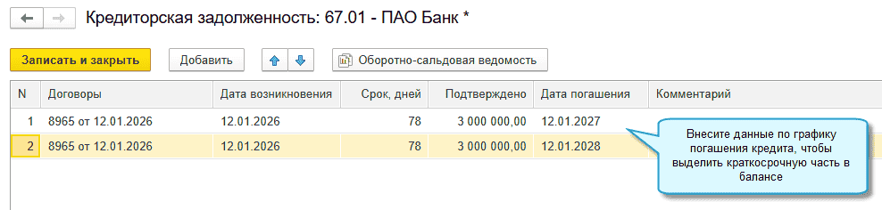 Заполнение баланса с разделением задолженности на долгосрочную и краткосрочную в «1С:Бухгалтерия 8»